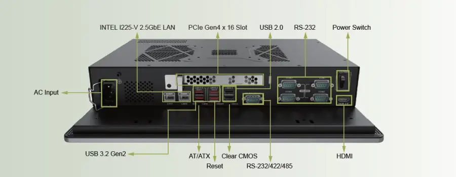 19" 450cd/m² 1280x1024 Panel PC bez ventilátoru s 12. generací procesoru Intel® Core™ i3-1220P na desce, TDP 28W, 8GB LPDDR4x na desce, PCAP touch, 12V DC, R10