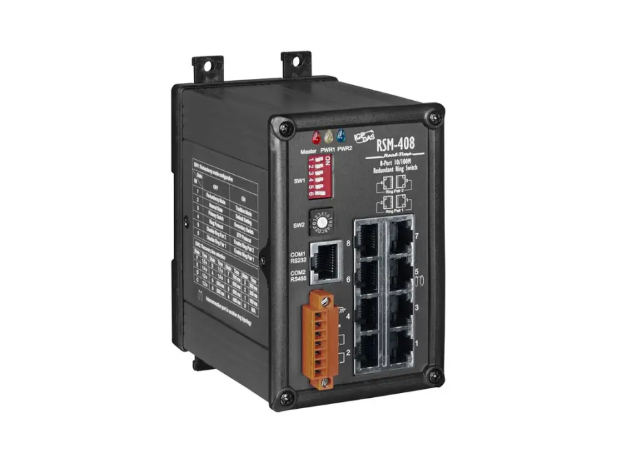 8portový redundantní kruhový přepínač s kovovým krytem (RoHS)