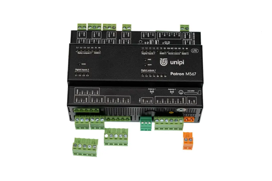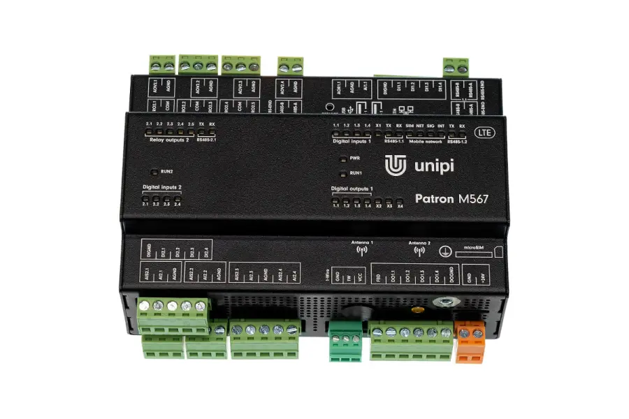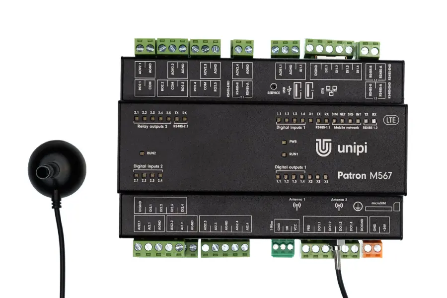 Programovatelný logický kontrolér (PLC) a převodník Unipi Patron M567. SW řešení Mode-RED a Mervis.